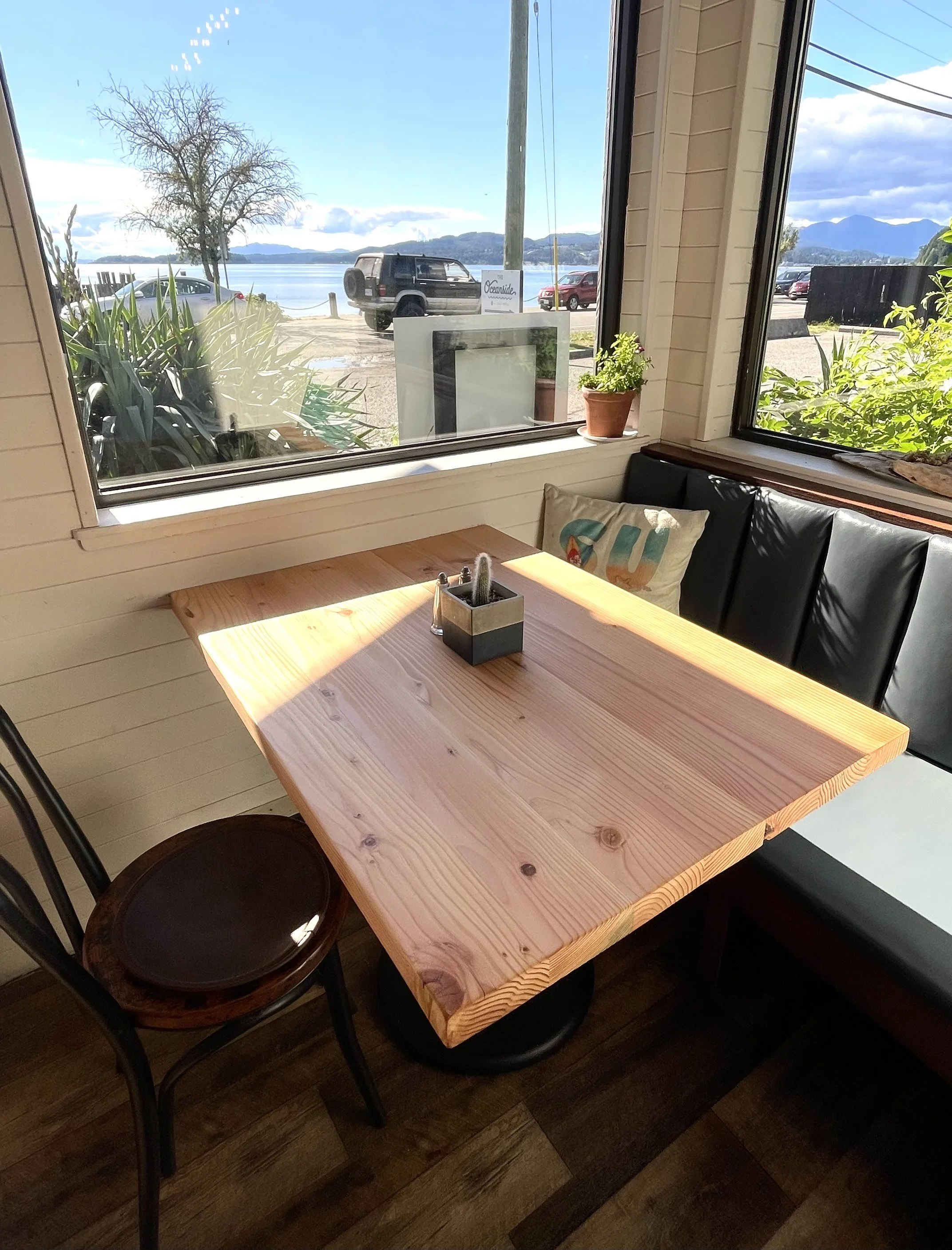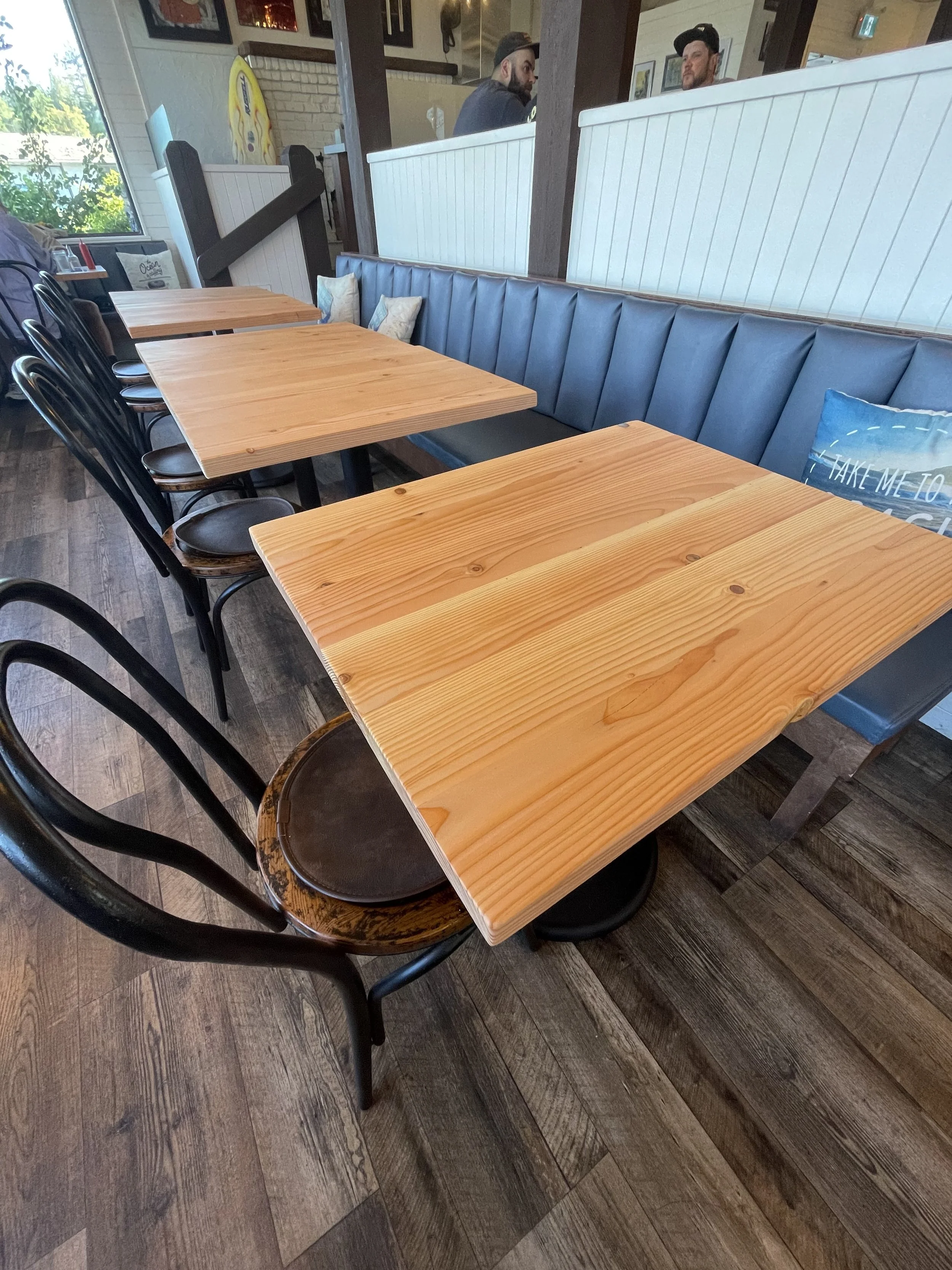 62” Long Salvaged Red Cedar Dining Table- Hand & Router Carved - Tinted Resin Fill 2023