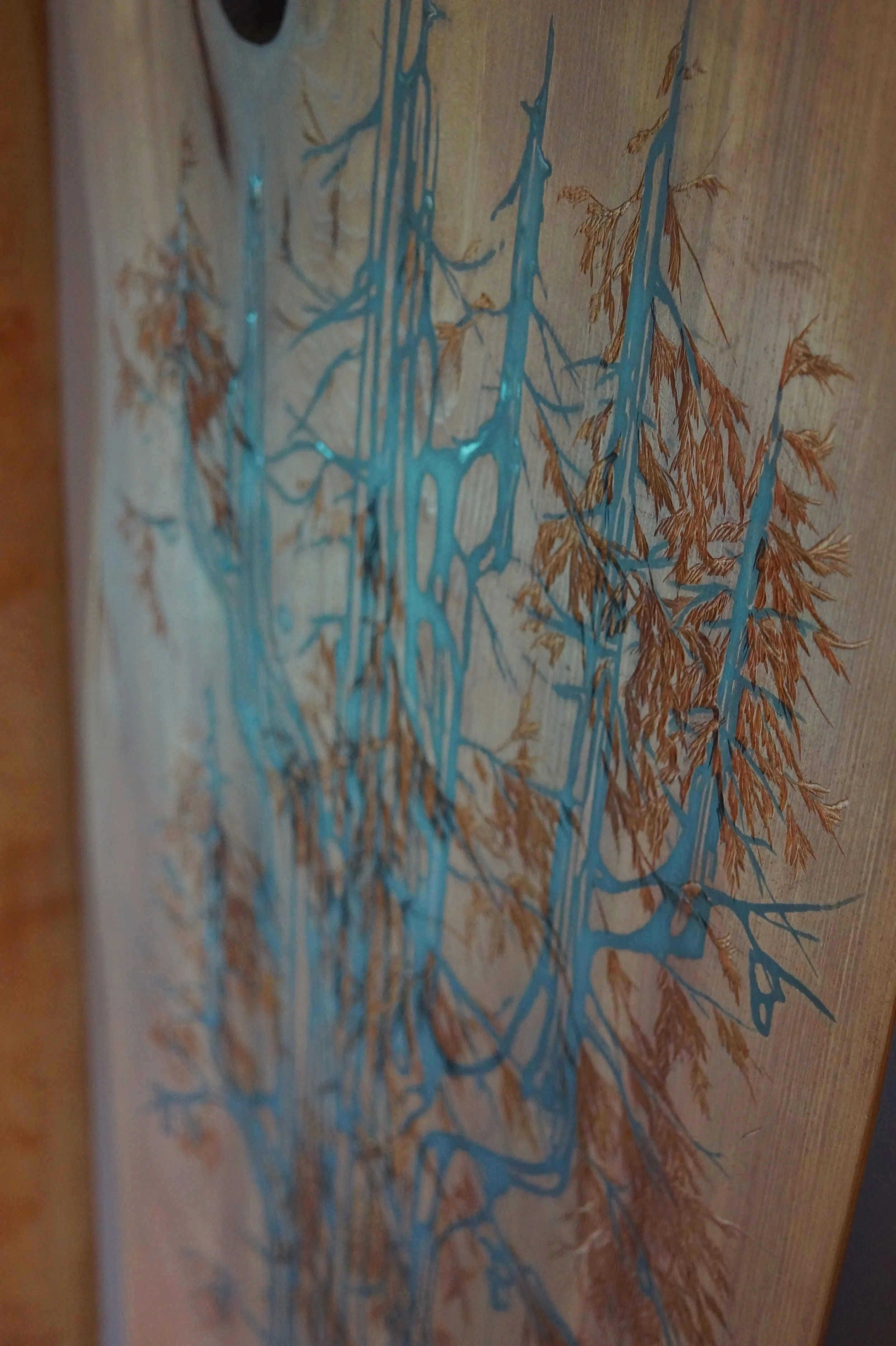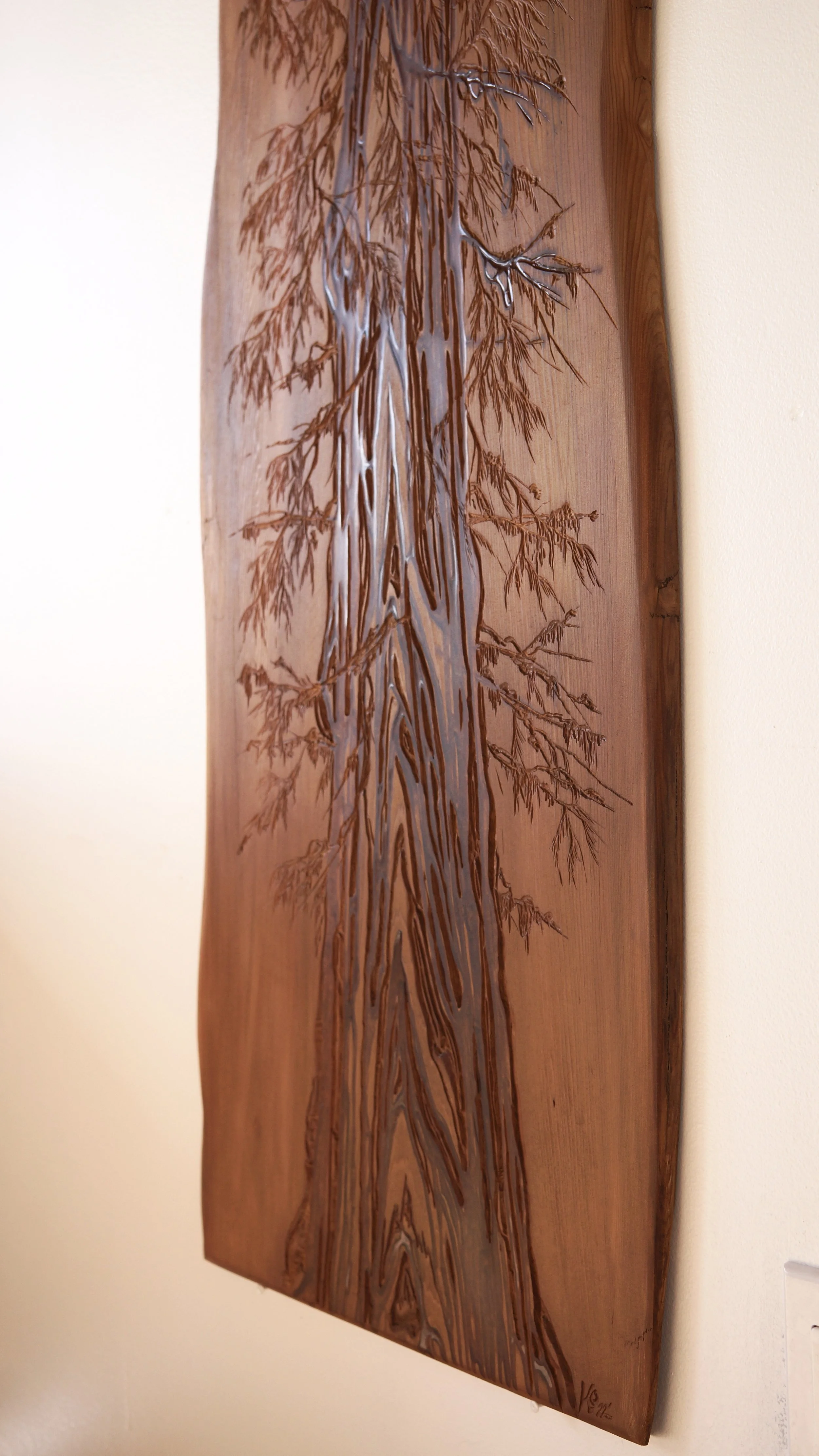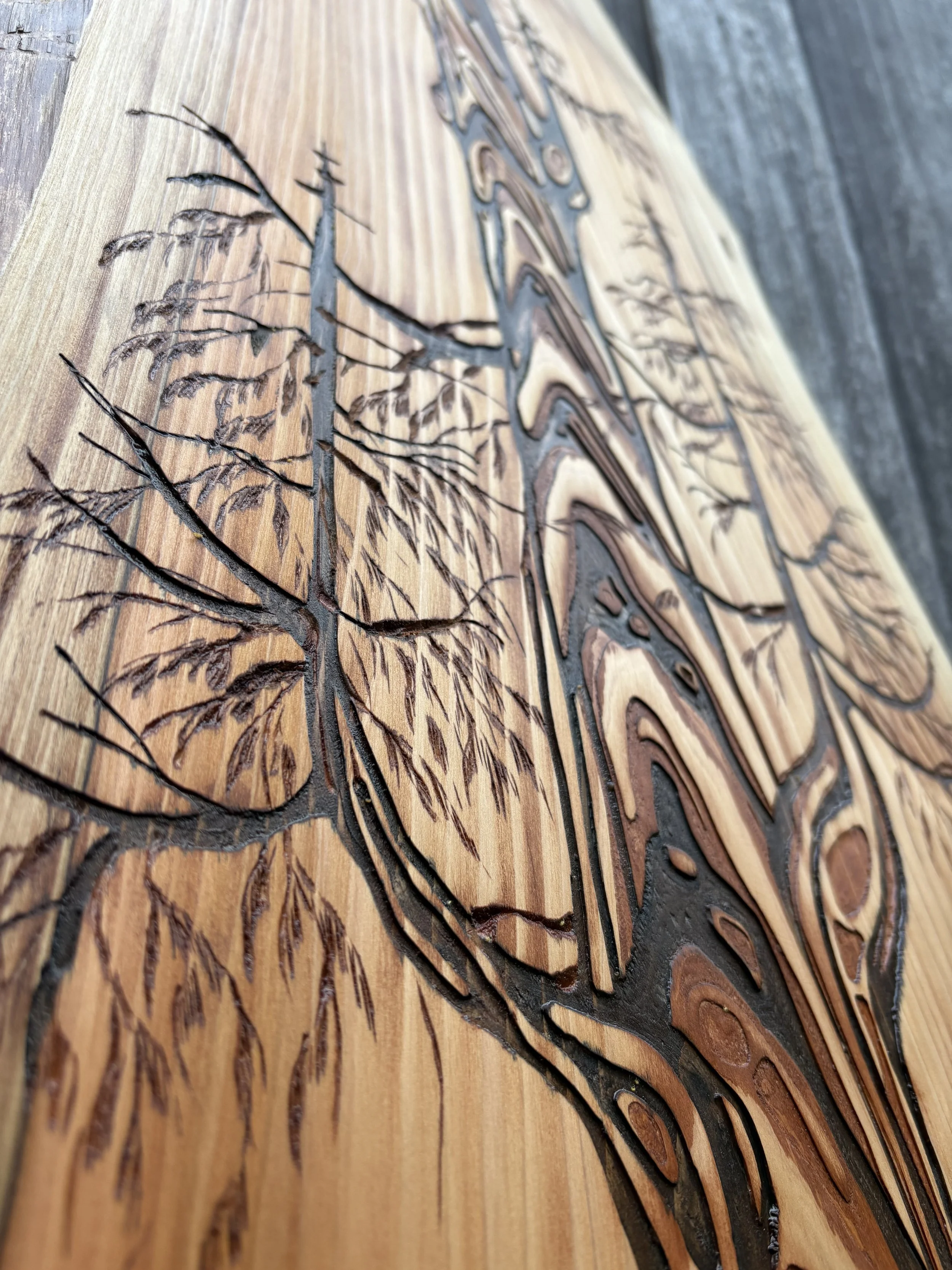 Hand & Power Carved, Charcoal Dyed Resin Inlay, Espresso Stain, Live Edge #salvaged Western Red Cedar Canvas