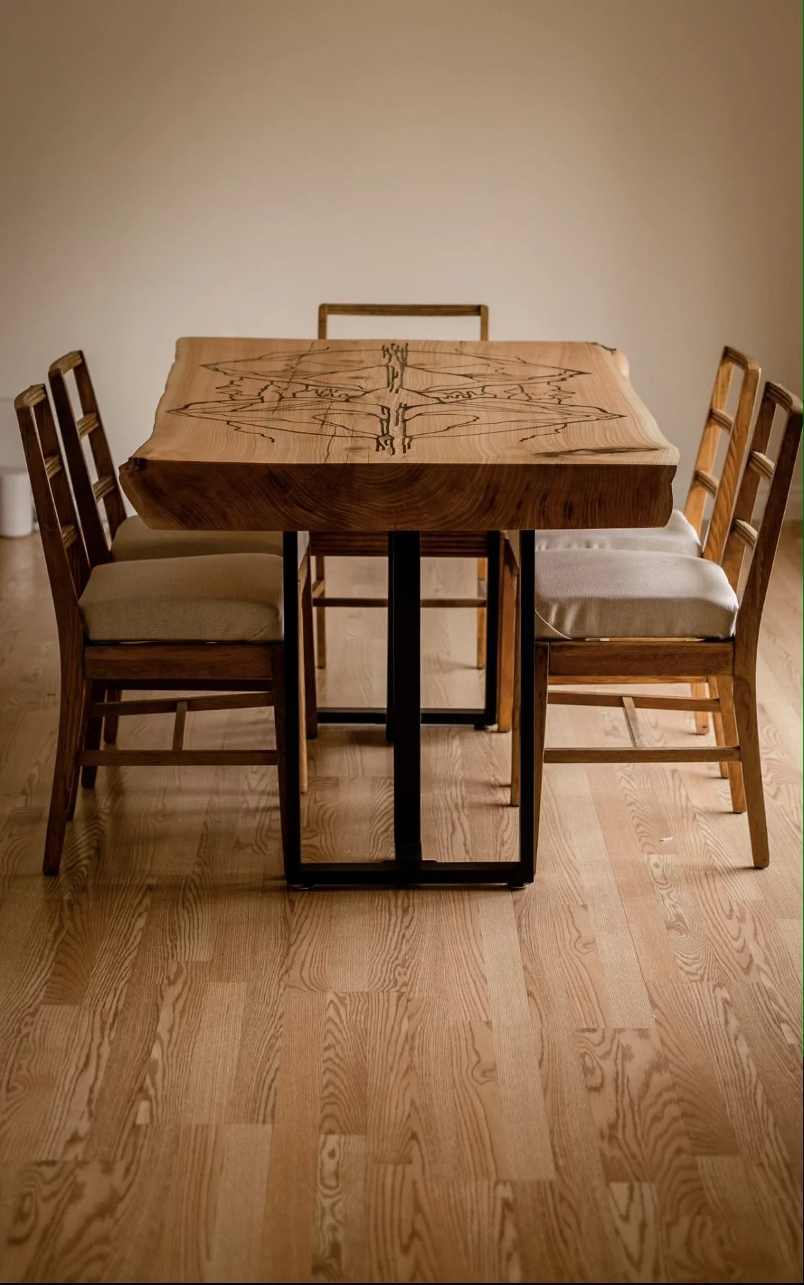 18x38x1, Hand & Power Carved, Charcoal Dyed Resin Fill, Saman Stain on #salvaged Maple plywood. 2022